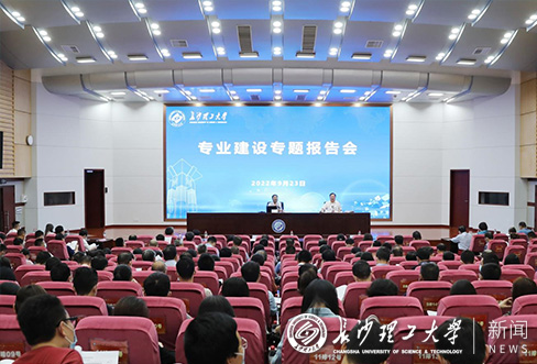 9月23日上午,我校在云塘校区图书馆报告厅召开专业建设专题报告会议。校长曹一家作题为《凝心聚力,推进专业高质量发展》的专题报告。副校长曾祥君、黄创霞出席会议。党政办、教务处等相关职能部门负责人、各学院主要负责人、教学副院长、专业与金课负责人、专业系主任和青年教师代表等近300人参会。会议由曾祥君主持。