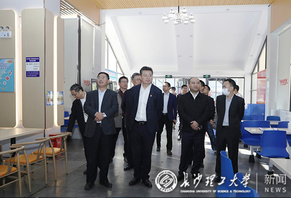 庄大力一行先后前往金盆岭校区和云塘校区,实地查看深入了解学生宿舍及食堂建设等情况,对学校基础设施建设给予了充分肯定。在洞庭湖水环境治理与生态修复湖南省重点实验室和“电网输变电设备防灾减灾”国家重点实验室分室考察时,庄大力听取了实验室建设情况及成果汇报,详细询问了科研团队相关技术原理及转化应用情况,对团队取得的丰硕科研成果表示赞许,鼓励科研团队要全面落实“三高四新”战略定位和使命任务,瞄准国家重大需求持续发力,积极服务地方经济社会发展。