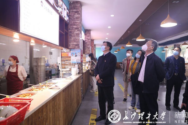 11月26日上午,校党委书记付宏渊在副校长谈传生的陪同下,率领党政办、宣传部、防控办、学工部(处)、研工部、保卫处、后勤中心等有关部门负责人赴金盆岭校区检查部署疫情防控工作,看望慰问一线工作人员和师生志愿者。