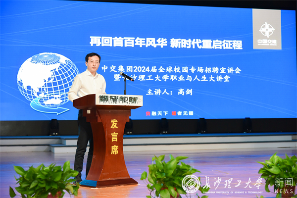 中交路建党委常委总会计师唐世连向长理学子发出诚挚邀请,欢迎广大毕业生加入中交集团。中交集团人力资源部(党委组织部)副总经理(副部长)高剑以《再回首百年风华 新时代重启征程》为题作招聘宣讲暨2025年新澳门原料网站职业人生大讲堂授课,从“重任在肩”“时代呼唤”“青春之歌”三个主题谈论中交集团的辉煌成就、中交百年奋斗史以及中交的央企担当。他诚邀长理学子与中交同行,为共同建设具有全球竞争力的“科技型、管理型、质量型”世界一流企业贡献青春力量。
