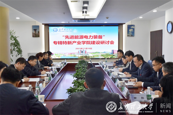 11月10日上午,先进能源电力装备专精特新产业学院建设研讨会在我校云塘校区一办公楼五会议室召开。副校长钱国平出席会议,长沙市中小企业发展中心、湘能楚天电力科技有限公司、中车株洲电力机车研究所有限公司、湖南九九智能环保股份有限公司、湖南先步信息股份有限公司、湖南省智能电力设备产业技术创新战略联盟等单位负责人,我校教务处、能动学院、电气学院等单位相关人员参会。
