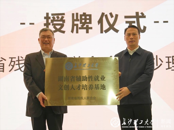 颁奖仪式上,尹华凯为我校颁授“湖南省辅助性就业文创人才培养基地”牌匾,这是我省首家辅助性就业文创人才培养基地。通过政府搭台、校企合作,我校将持续加强与托养机构交流对接,努力构建政校社多方聚力新生态,推动高校与托养机构在人才共享、创意项目开发等方面的深度合作。我省首个辅助性就业公用品牌——“手心”品牌也同步发布。同时,我校还为“手心”品牌捐赠了50份知识产权,为新生品牌注入第一股力量。