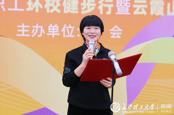 蒋璟萍致开幕辞。她向全体女教职工致以节日的诚挚问候和美好祝愿,并期望大家能在本次活动中,通过行走感受校园的独特魅力,享受运动带来的快乐。她强调,今年是新中国成立75周年,湖南省正处于加快建设教育强省的关键时期,同时也是我校冲刺“双一流”目标的决胜之年。全体长理人正以前所未有的决心和动力,展现出“时不我待,只争朝夕”的精神风貌。她呼吁大家要以更健康的体魄、更饱满的热情、更坚定的信念,共同为学校高质量发展集智献策,贡献力量!