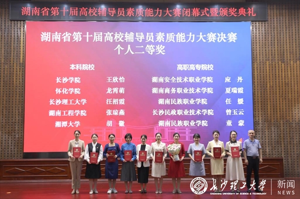 5月30日-5月31日,湖南省第十届高校辅导员素质能力大赛决赛在湖南工程学院举行。经过激烈角逐,我校斩获本次大赛(本科组)团体亚军其中,法学院辅导员刘阳荣获大赛一等奖,交通学院辅导员汪招霞荣获大赛二等奖,计通学院辅导员潘枝花荣获大赛优胜奖。
