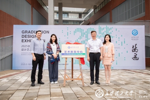 让创意扎根湖湘,用设计对话未来,5月16日,我校“艺术教育中心”在云塘校区“三全育人”教育基地挂牌成立,校党委书记付宏渊、党委副书记方琼,以及学院相关负责人共同揭幕。随后,我校设计艺术学院2025届毕业设计作品展在“三全育人”教育基地4楼展厅启幕。