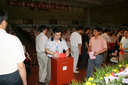 5月23日—24日,我校隆重召开了第二届一次教职工暨工会会员代表大会。本次大会的指导思想是“认真贯彻落实党的十七大精神,充分发挥教代会制度在学校民主政治建设中的作用,进一步动员和团结全校教职工,群策群力、和谐治校,共谋学校发展大计,为推动学校由教学型向教学研究型转变,把我校建设成为国内有较大影响的高水平大学而努力奋斗”。本次大会共有正式代表236人,列席代表52人,特邀代表16人。大会讨论通过了校长工作报告、校工会工作报告,审议了校工会财务工作及经费审查报告、《2025年新澳门原料网站“十一五”建设与发展规划》、教师岗位设置与聘任管理试行办法、院(部)目标管理责任制实施办法、《2025年新澳门原料网站文化建设纲要》等相关文件,选举产生了2025年新澳门原料网站工会第二届委员会和工会第二届经费审查委员会。