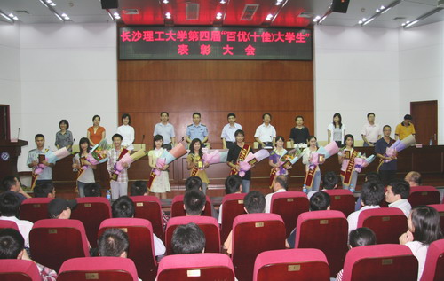 组织部颜鲜明部长代表学校宣读了表彰决定,15个学院及研究生部共100名同学获得我校第四届“百优大学生”称号,白建敏(物电学院)、何丹(经管学院)、肖宁(经管学院)、张令茹(化生学院)、李娟(城南学院)、李守磊(能动学院)、李丽丽(数计学院)、李慜乐(电气学院)、范江华(计通学院)、刮清泉(汽机学院)等十名同学荣获我校第四届“十佳大学生”称号。