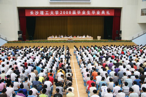 “一朝师生情,终生缅于怀;学子闯天下,母校候佳音。”6月27日上午,我校2008届毕业生毕业典礼在金盆岭校区体育馆隆重举行。校党委副书记、副校长洪源渤,党委副书记甘均良,副校长黎正稳、张建仁,纪委书记刘建国,副校长付宏渊、文先明,校长助理邹宏如等校领导出席了大会,组织部、学工部、教务处、招生就业处、校团委负责人、各学院党政领导、全体学生工作干部以及全体毕业生参加了大会。会议由校党政办主任谈传生主持。