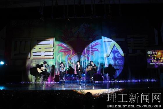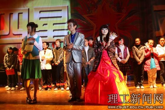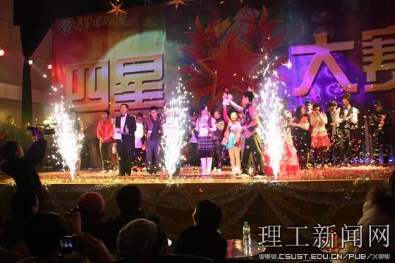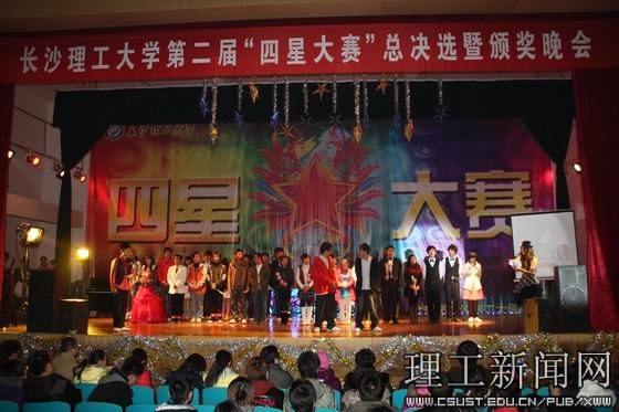 12月1日晚,学生活动中心一楼报告厅,流光溢彩,场面火爆,掌声和笑声不断。旨在丰富校园生活,活跃校园文化,挖掘我校学生的艺术潜力,展示我校学生综合素质的第二届“四星大赛”总决赛暨颁奖晚会在此举行。中国曲艺家协会、湖南省曲艺协会会员、长沙市曲艺协会秘书长傅成生,我校阳光艺术团指导老师郭剑、文丽丽,水利学院分团委书记王学成、校团委陈娅玲担任决赛评委;校团委副书记方琼、部分学院分团委书记莅临决赛现场。
