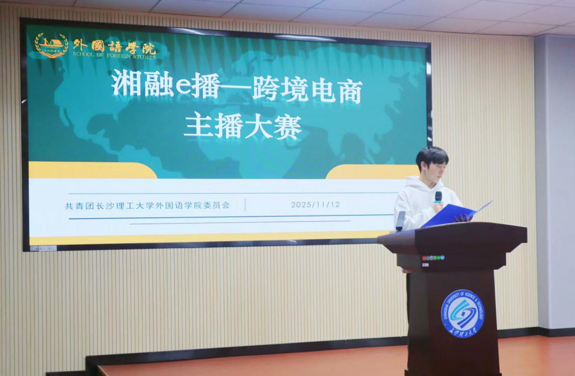 11月12日19:00,外国语学院“湘融e播”跨境电商主播大赛初赛在金盆岭校区三教321报告厅(一会场)与229报告厅(二会场)同步举行。院党委副书记周芳、团委书记郭恒、T-GEN Limited企业代表刘华丽与Jessica、助农创业直播团队带队导师田向阳与胡戬及外语专业教师邹辉、李柔出席并担任评委,全院33支参赛队伍参与初赛选拔。