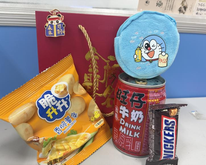 学院为全体考研学子精心准备了满载心意的“金榜题名”礼物袋,袋中每样物品都承载着美好期许:“未来可期”主题钥匙扣与钥匙包上“高分喷雾”字样寄托了学院祝愿大家考试顺利、前程似锦美好期待;士力架可帮助快速补充能量,让大家以饱满状态应对高强度考试;脆升升薯片取“顺利升学”之意,祝愿学子们在考研这场战役中顺利跨越分数线、稳步迈向目标院校;旺仔牛奶则寓意好运常伴