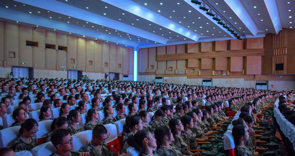 918日晚,金盆岭校区五号教学楼大礼堂座无虚席、掌声阵阵,校党委书记付宏渊为2019级新生上思想政治教育第一课,党政办、学工部、马克思主义学院负责人和各学院党委书记、新生辅导员一起听课。