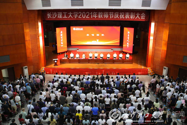 9月10日下午,我校 2021年教师节庆祝表彰大会在云塘校区大会堂举行。学校党政领导班子成员、教师、学生及离退休老同志代表近千人参加了大会。会上,校党委书记付宏渊发表了题为《适应“双主体”,争当“大先生”,为决胜建成“百强”大学作出更大贡献》的讲话。校长曹一家宣读表彰文件。大会由校党委副书记蒋昌波主持。