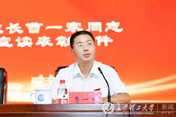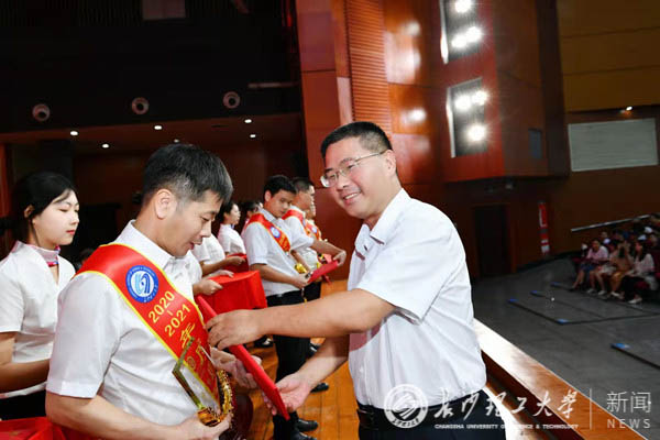 曹一家宣读了学校2020—2021学年度 12名“教学贡献奖”教师、10名“师德标兵”教师、112名优秀教师、81名优秀教育工作者等获奖名单。他勉励受表彰的教职工要再接再厉,在教书育人工作中取得新的更大成绩,要求广大教师应以先进为榜样,以“德高为师,身正为范”为标尺,不断增强育人本领,为学校“双一流”建设和决胜建成“百强”大学作出新的贡献。