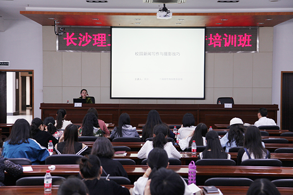 4月10日下午,轻快的笑声不断从一办九楼会议室传出,2018年新闻宣传培训班在此如期开课,来自《三湘都市报》科教版主任黄京作了题为《校园新闻写作与摄影技巧》的讲座,台下坐的是来自全校各院部的新闻通讯员、校园小记者等。