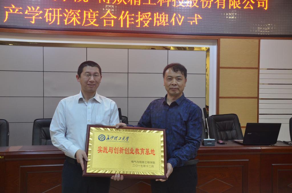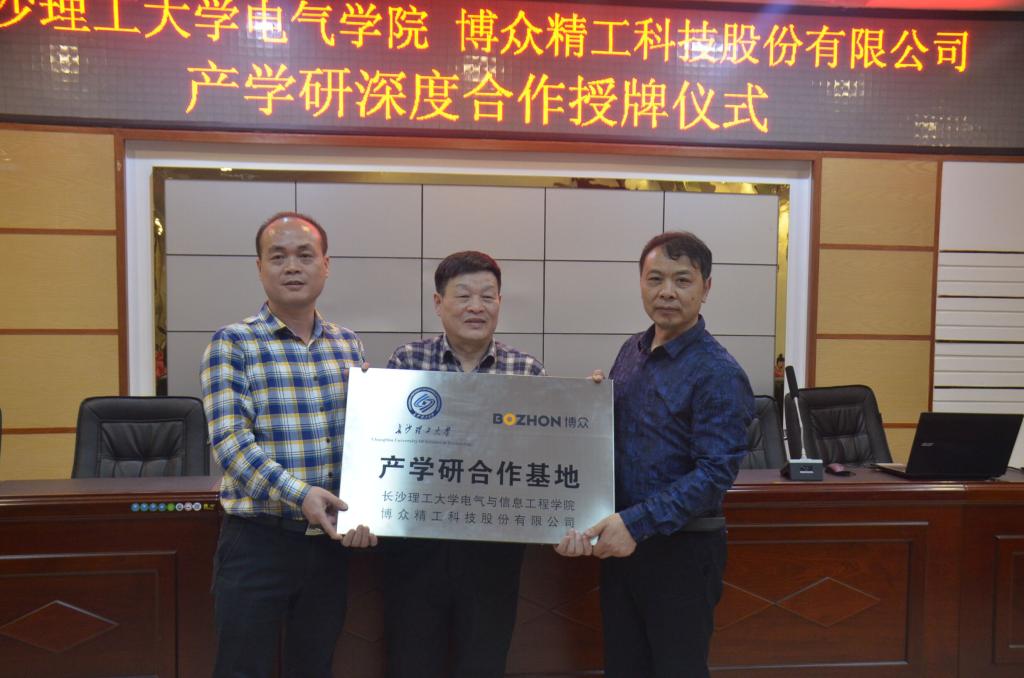 夏向阳对嘉宾的到来表示热烈欢迎,他强调,本次会议为大家提供了一个专业学习指导交流平台,也希望共同创新和进步。张敏三希望通过本次交流能够让大家对进一步增进了解,为创新发展提供新的思路和动力。这次“产学研合作基地”的建立有着非常好的基础,希望通过这个平台,为今后进一步实现更加紧密而深度的合作关系,充分发挥学校人才和科技支撑力量优势,在解决企业技术难题、培养应用型科技人才等方面实现共赢。杨文新从博众情况、发展历程、博众产品、人才政策及公司文化等六个方面向同学们详细的展示了博众精工科技有限公司,特别希望通过合作,能更好地依托高校技术优势帮助企业解决生产实际问题,同时欢迎学校相关专业师生来企业进行教学实习和工作见习。贺勇介绍了产学研、校企合作情况,表示在以后专业学生的培养中会更加注重实践方面,并将实习实践作为学业考核的一项重要内容。随后,双方举行了“产学研合作基地”和“实践与创新创业教育基地”授牌仪式。