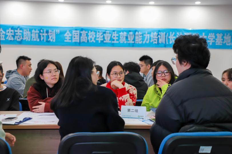 11月11日下午,我校“宏志助航”培训班在云塘校区学生活动中心、金盆岭校区经管楼等地同时开展无领导小组面试专题培训。