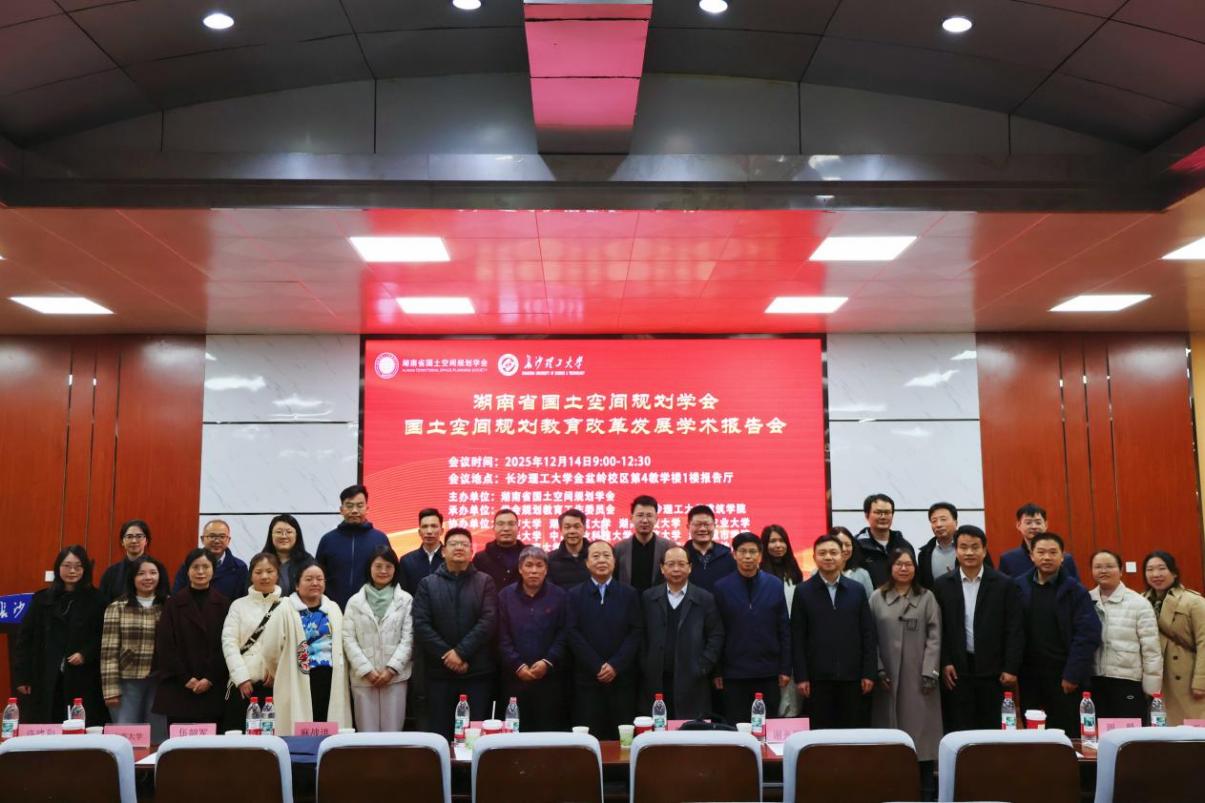 12月14日,湖南省国土空间规划教育改革发展学术报告会在我校金盆岭校区4教报告厅举办。本次报告会由湖南省国土空间规划学会精心策划,学会规划教育工作委员会与我校建筑学院联合承办。湖南省国土空间规划学会理事长金永章,学会副理事长、秘书长谢光辉,自然资源部人力资源开发中心职业资格二处处长傅兆,华中科技大学二级教授、黄亚平,湖南省国土资源规划院副院长、教授级高工麻战洪等出席会议。省内各大高校的规划院系代表、学会教育工作委员会成员、学会各会员单位,以及我校师生代表参会。会议由建筑学院党委书记熊鹰主持。