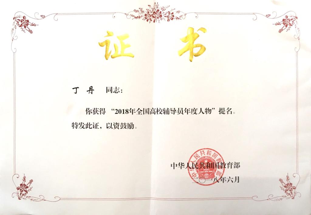我校辅导员丁丹荣获“全国第十届高校辅导员年度人物提名奖”