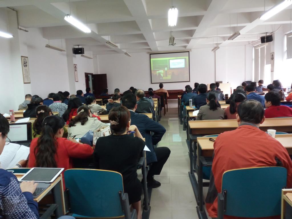 郭建鹏教授主要从事课程教学论和教育心理学研究,通过实证研究探讨学习的规律及教学方法的改进,在信息技术与教学方法进行深度融合方面有自己独到的心得。此次讲座中,他以一位普通教师的身份向我校教师分享了自发研究、实践翻转课堂,借助“雨课堂”技术改变教学方法的过程。他细致讲解了O-PIRTAS翻转课堂教学法,即以教学内容和目标、课前准备导入、课前视频教学、课堂视频回顾、课堂知识测试、课堂活动设计、课堂总结提升七大步骤为核心环节的教学方法,助力教师转变为“以学生为中心”教学观念。他在讲座中提到“没有有效学习的课堂就是浪费时间、浪费生命”引起了在座教师的强烈共鸣。他通过展示“翻转课堂+雨课堂”与传统课堂在课堂互动、学生注意力、学习效率及学习成绩等方面的试验结果对比,示范“雨课堂”通过课堂实时在线互动,让手机从学生的“低头工具”变为学生积极参与学习的“抬头利器”,激起了老师们浓厚的学习兴趣,在讲座中引发老师们连连发问。