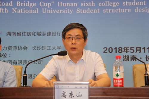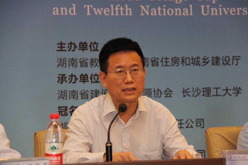 叶泽致辞,对竞赛组委会的倾情付出、对全省各参赛高校的高度重视、对湖南路桥集团等企业的大力支持表示衷心感谢。他表示竞赛对促进全省高校交流、对提升土木类人才培养质量意义重大,希望可以举办更多对人才培养有实践指导意义的活动。