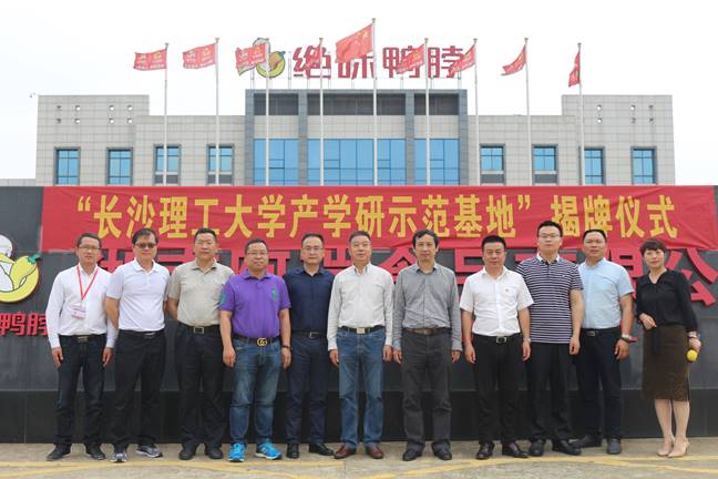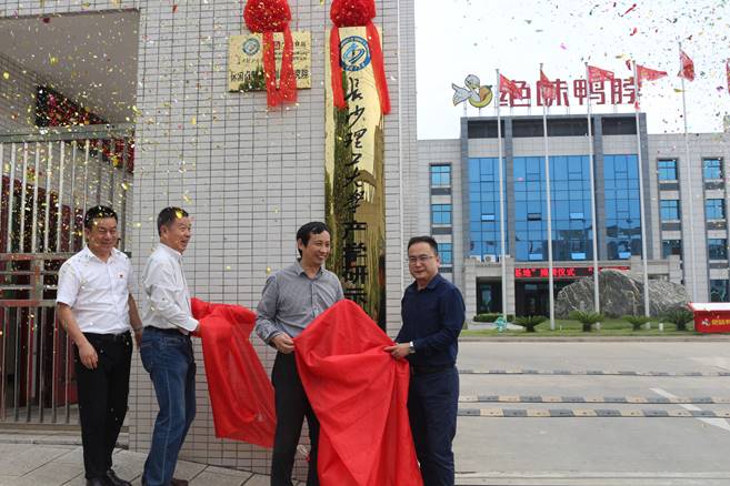 5月4日,我校产学研示范基地、休闲卤制食品创新研究院在绝味食品股份有限公司旗下湖南阿瑞食品有限公司正式挂牌。湖南省食品行业联合会荣誉会长刘送保,副校长杨伟军、国家级宁乡经开区党工委副书记黄瑶、绝味食品董事赵雄刚共同为基地和研究院揭牌。成果转化中心常务副主任李岳林、科研部副部长王建辉、绝味食品董事会秘书彭刚毅等参加了揭牌仪式。