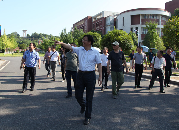 7月18日至19日,校党委书记付宏渊带领全体校领导和有关职能部门负责人,深入金盆岭和云塘校区教学楼、图书馆、宿舍楼等,对师生学习、生活条件等进行了检查。