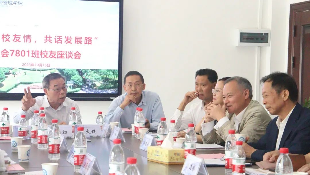 随后,校友们来到经管大楼参加座谈会,副校长谈传生、校友总会会长洪源渤等领导出席。