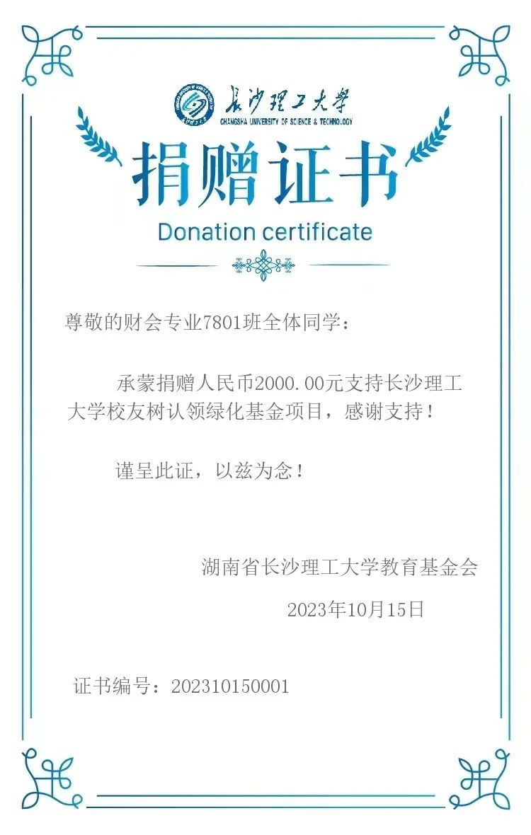 座谈会后,与会人员在经管大楼门前合影留念。为感念教育之恩、进一步回馈母校,财会7801班校友捐赠2000元用于学校相关绿植的维护与保养,还校园一片蓝天。