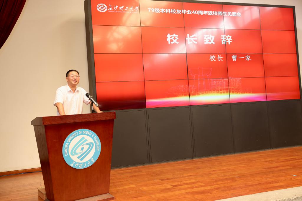 曹一家向校友们回到母校表示热烈欢迎,他从办学规模、办学特色、学科建设、师资力量、人才培养等方面介绍了学校建设发展情况和近年来取得的成就,他指出学校站在新的历史起点上,正全力锻造“四种力量”、打造“四个基地”,积极推进“双一流”建设,全面提升办学质量和育人水平、决胜建成“百强”大学,向创新型高水平大学迈进,希望广大校友继续支持母校的发展、助力母校早日实现发展目标。他强调,79级校友作为我校向社会输送的第一批本科毕业生,他们在各行各业深耕细作,有的成为行业领军人才和精英翘楚,有的成为国家重大工程的设计者、建设者,为祖国的复兴和现代化建设作出巨大贡献,也为母校争得了荣誉,感谢他们的支持和付出!