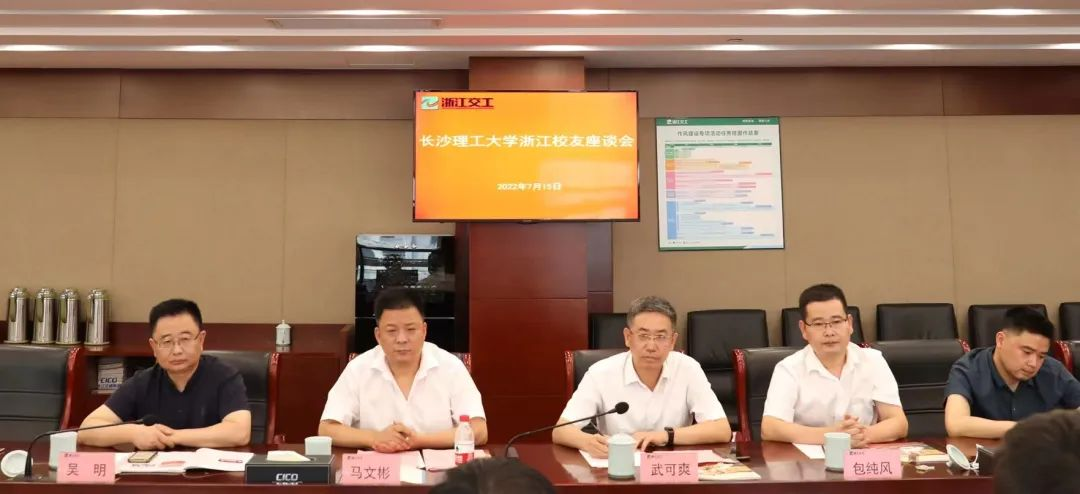 在浙江交工集团有限公司,90级校友武可爽等14位校友与老师们开展座谈、交流。