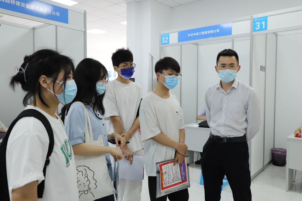 本届校友企业专场招聘会是今年长沙新冠疫情被有效控制后学校举办的第一次线下招聘会,仅邀请了长沙地区校友企业参会。中交二航局长沙建设公司、中国水电八局水电公司、中铁五局、湖南磐云数据有限公司、湖南佳元禄食品有限公司、湖南新程复兴教育技术有限公司等33家校友企业与部分校友任高管的企事业单位参展,提供岗位约1000个。我校400余名毕业生参加了本次招聘,已有100余人与校友企业初步达成签约意向。