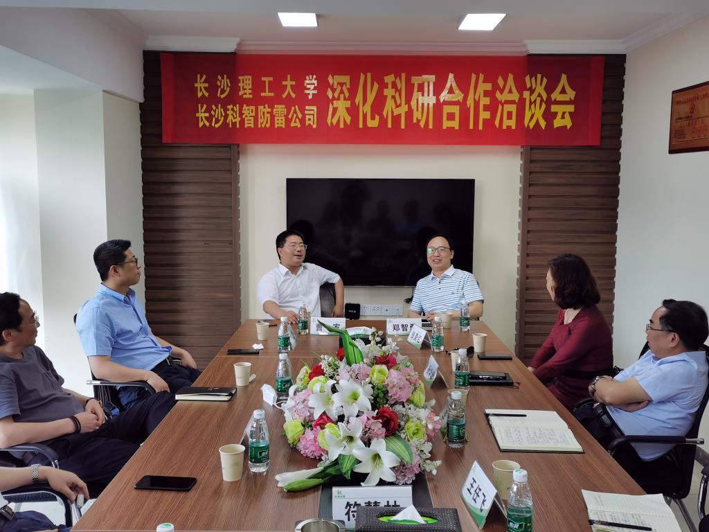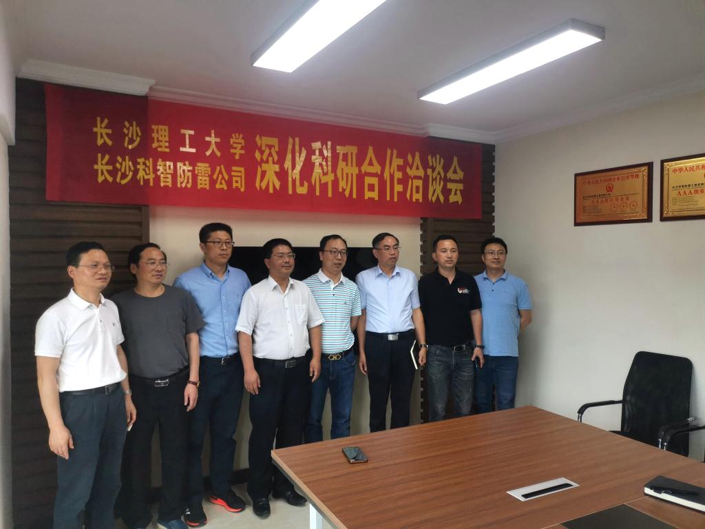 在长沙科智防雷有限公司座谈时,曹一家高度评价了创业校友的开拓精神。科智防雷创始人、96级电气专业校友郑智勇向母校的各位老师介绍了企业坚持技术创新,成为行业标准制定者的经历。科研部还就双方开展校企科研合作深入探讨。曹一家希望科智防雷立能锐意创新、开拓进取,以科技推动实体发展,以骄人的业绩实现了报效祖国的人生理想和服务社会的人生价值。