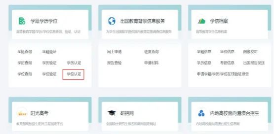 1. 登录学信网(https://www.chsi.com.cn/),在“学籍学历学位”栏目下,选择学位认证。