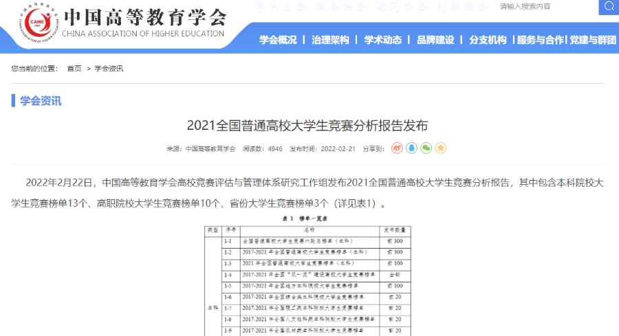 我校位列2021年全国普通高校大学生竞赛榜单(本科)第22名!