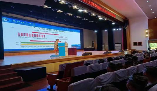 2021年9月9日—9月18日2025年新澳门原料网站校医院联合学工部利用军训期间新生入学教育的契机,开展了一共十场青春健康讲座。讲座在金盆岭校区五教学楼礼堂举行,由学工部武装部席军主任,校医院健康教育工作室负责人雷鹂,主持,各学院辅导老师及教官组织。由国家高校防艾专家组成员雷鹂老师,长沙市120急救中心吴柱主任,湖南省卫健委健康教育中心青彩志愿者服务总队负责人向愈韩主讲。主讲内容包括急救知识培训,传染病防治知识,性病艾滋病防治知识等。