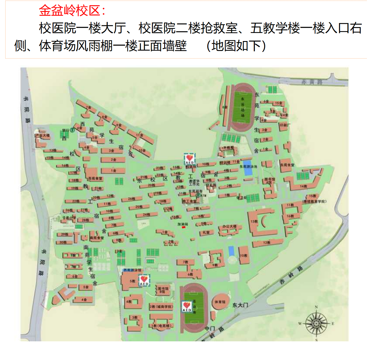 值得一提的是,为打造更安全的校园环境,近年来卫健办社区、省市红十字会各级卫生行政主管部门积极沟通申报,推进校园急救设备的配置工作,在两校区多个重点区域安装了AED专门制作了AED的安装地图和使用教学视频,通过学校官方微信公众号、各院系新媒体平台等进行传播,提高了师生员工的知晓率和使用技能。