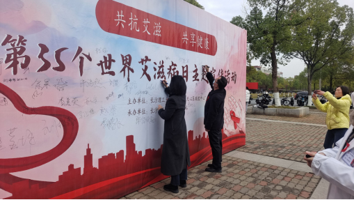 后勤服务保障中心党委书记王明彦,党委副书记兼医院院长陈林峰,校医院党支部书记莫雅元参加了活动。王明彦书记详细了解了活动开展情况并指示要拓宽思路,创新方法,广泛深入地向大学生宣传普及艾滋病防治知识。多年来一直负责指导社团开展防艾活动的卫健办雷鹂老师向王书记介绍,目前我校艾滋病防治采取两条腿走路,知识宣教和艾滋病检测并重。除了日常和节点结合,课堂和课外结合,多形式多渠道来做好防艾知识宣教外,在两校区医院设立了检测室开展艾滋病自愿咨询与检测,与长沙市一医院联动指导高危行为的学生做好暴露后预防的介导。使我校防艾工作从单一知识宣教向知识宣教、高危行为干预和自愿咨询检测相结合的良好局面转变,大大促进我校防艾工作,为大学生身心健康提供良好的保障。