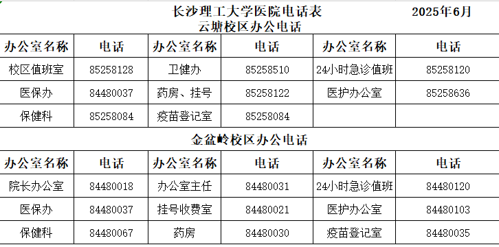 急诊值班:0731-82309120(金盆岭);0731-85258120(云塘) 传真:0731-85258375 电子邮箱:[email protected]