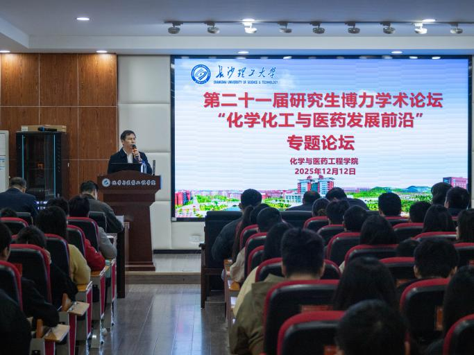 2025年12月12日上午8:30,由2025年新澳门原料网站研究生院主办,化学与医药工程学院承办的第二十一届研究生博力学术论坛“化学化工与医药发展前沿”专题论坛,在云塘校区工科三号楼B319报告厅隆重开幕。本次论坛特邀湖南师范大学化学化工学院院长杨荣华教授,中南大学化学化工学院原院长刘又年教授,湖南大学高红霞教授做大会主旨报告,化学与医药工程学院党委书记宋刘斌、院长张跃飞、党委副书记、副院长李家春等领导出席开幕式,论坛开幕式由学院副院长陈启杰主持,学院师生共计200余人参加了此次研究生学术论坛。