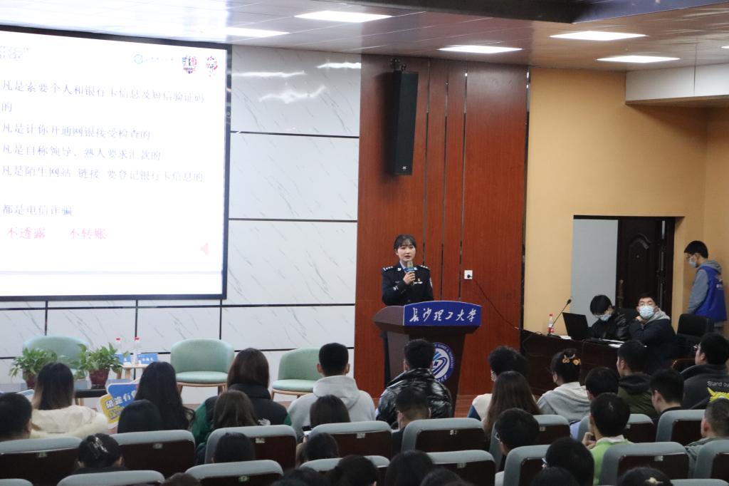 活动伊始,陈慧警官利用“八个凡是”进行提问,带领同学们进行反电诈课堂学习,并针对信息泄露问题和诈骗问题以生活真实的案例作了详细的解答,让同学们对反电诈有了更深的理解。