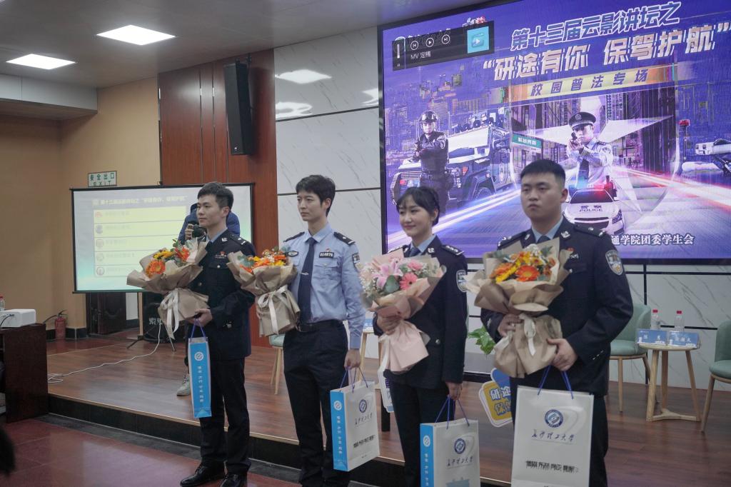 在互动访谈环节,现场观众积极提问,4位警官针对大家的提问给出了具体的建议和提醒。陈慧警官分享了关于“如何更好的处理亲子关系”的真实案例,给现场同学以积极向上的引导,倡导同学们勇敢乐观的面对人生以及树立正确的三观。涂瀚文警官则针对醉酒案例和打架案例,提醒大家珍惜生命,保障自己人身安全。欧阳睿乙警官结合平时处理的交通案件,指出校园电瓶车行车道路注意事项,并提醒同学们在使用电动车时要注意生命安全,财产安全和用电安全。齐翔宇警官结合毕业后的规划问题告诫同学们要早日规划好自己的方向,坚持梦想。现场观众反响热烈,呼声很高。