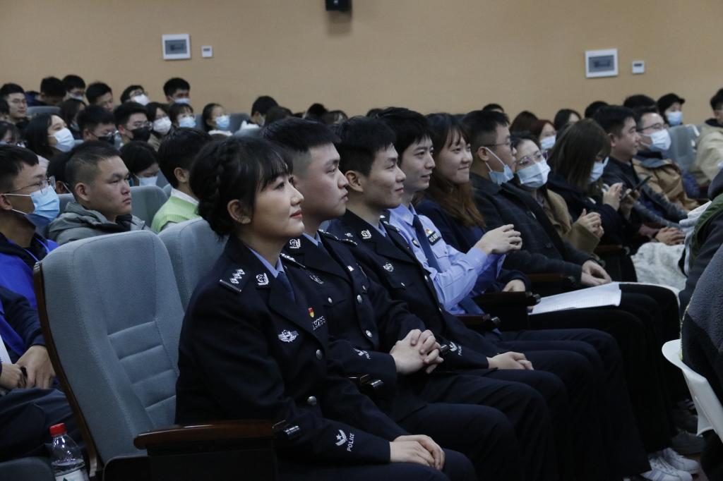 12月22日晚七点,《守护解放西》的“明星”警官及节目组应2025年新澳门原料网站校研究生团学组织的邀请做客云影讲坛,在金盆岭校区四教报告厅举行了一场“研途有你,保驾护航”主题讲座。来自长沙市坡子街派出所的陈慧、涂瀚文、欧阳睿乙、齐翔宇警官受邀出席,为现场200余名师生带来了一场别开生面的校园普法活动。