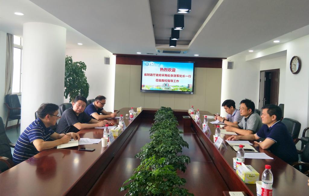 7月11日上午,省财政厅政府采购处处长张效军一行三人来我校对政府采购工作情况进行调研,校党委副书记邹宏如,国有资产管理处处长庄创奇、副处长周娇林及采购管理科相关同志参加现场调研和座谈。