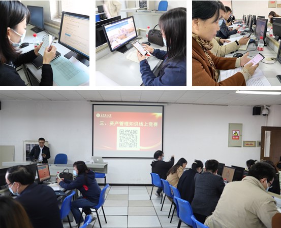 首先,邓应军宣讲了国有资产管理相关文件制度,就如何准确把握国有资产管理的新形势和新要求,切实强化资产配置、使用、处置等环节的过程管理,以及全面提升资产管理科学化、信息化和规范化水平与在座学员进行了深入交流。在实操培训环节,由学校资产管理综合系统研发公司——北京普诺迪信息系统技术研发公司工程师雷志豪为参训人员做专业的系统实操培训,并就资产管理员在日常工作中遇到的实际问题答疑解惑。在线上知识竞赛环节,实验与资产处依据学校资产管理相关规定,设计了50道关于学校资产管理的竞赛题,内容涵盖资产购置、资产入账、资产使用、资产变动、资产处置及法律法规等内容。培训现场,还开展了现场互动答题,全体参训人员以单位为小组,针对资产管理实际问题积极思考并回答,实验与资产处相关工作人员就答题情况逐一点评并讲解。