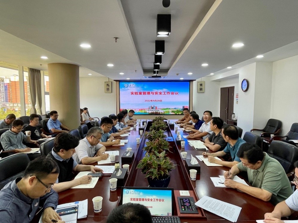 9月28日下午,我校实验室管理与实验室安全工作会议在云塘校区一办公楼六会议室召开。校长曹一家出席会议,研究生院、教务处、科研部、保卫处、后勤中心等职能部门负责人、各学院分管实验室副院长、工科学院实验中心主任等近50人参会。会议由副校长黄创霞主持。