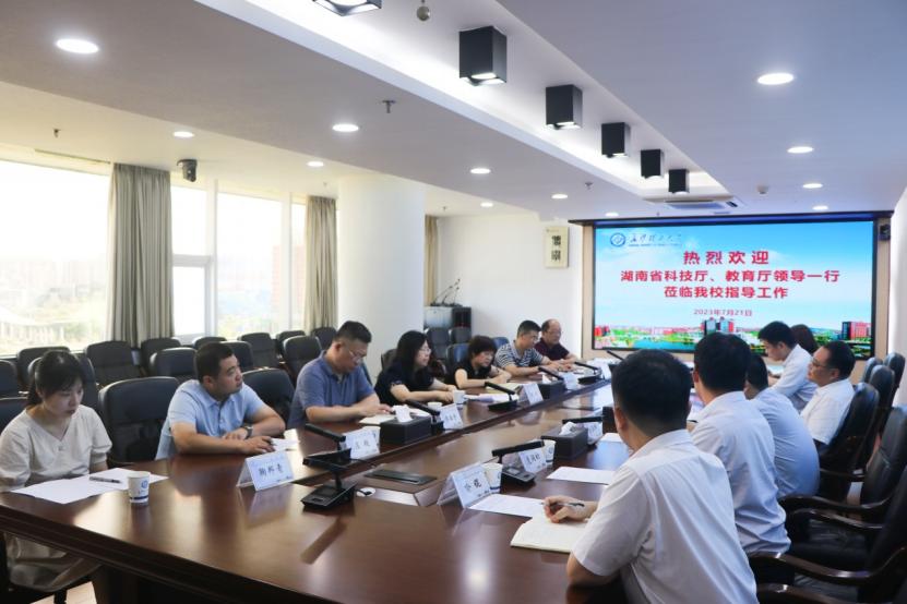 7月21日上午,湖南省科技厅副厅长朱皖,教育厅科技处处长王红冰,科技厅成果转化与区域创新处处长李征宇,科技厅成果转化与区域创新处副处长李小兵,教育厅科技处一级主任科员左超,省技术产权交易中心研究员周利平等一行7人来我校调研座谈。党委委员、副校长刘朝晖出席调研座谈会并讲话。科技成果转移转化及相关学院、科研团队负责人参加座谈。