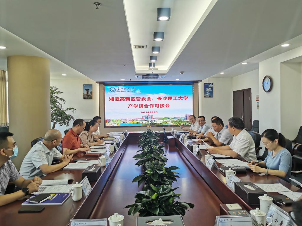 9月9日上午,我校与湘潭高新区管委会产学研合作洽谈会在云塘校区一办公楼五会议室举行。校党委副书记、校长曹一家,副校长曾祥君,人文社科处、科研部、成果转化中心及相关学院负责人,湘潭高新区管委会副主任吴小波,湘潭高新区科技创新局局长文平,湘潭高新区产业发展局副局长刘灿辉及企业家代表湖南世优电气股份有限公司董事长彭建国,湖南华亿高新科技成果转化服务有限公司董事长杜良忠共同参加。