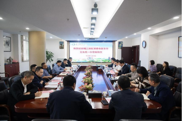 10月28日下午,湘江新区(长沙高新区)党工委委员、管委会副主任王先民一行来我校调研科技创新情况。校党委书记付宏渊,副校长张军辉出席会议,科技处、资产处、科技成果转移转化中心相关负责人参加座谈会,会议由张军辉主持。