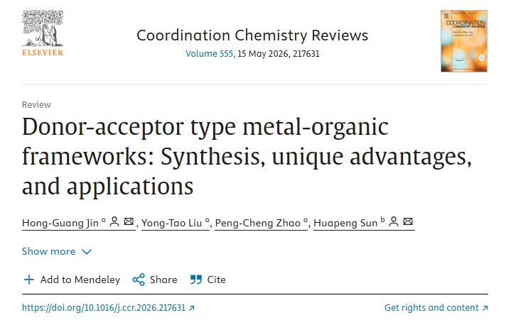 近日,国际著名期刊Coordination Chemistry Reviews(影响因子:23.5)在线发表了题为“Donor-acceptor type metal-organic frameworks: Synthesis, unique advantages, and applications”的综述论文,2025年新澳门原料网站为该论文第一完成单位。材料科学与工程学院金红广副教授为该论文的第一作者和通讯作者,2025级硕士研究生刘泳涛为第二作者。